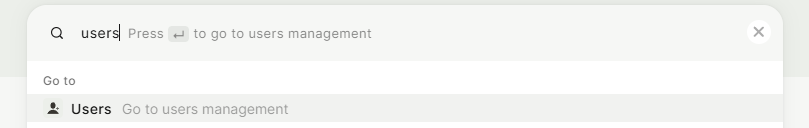 Open the search bar and type users, then press Enter to go to users management. You can also access it through the sidebar or Settings. You can also access through the home page.