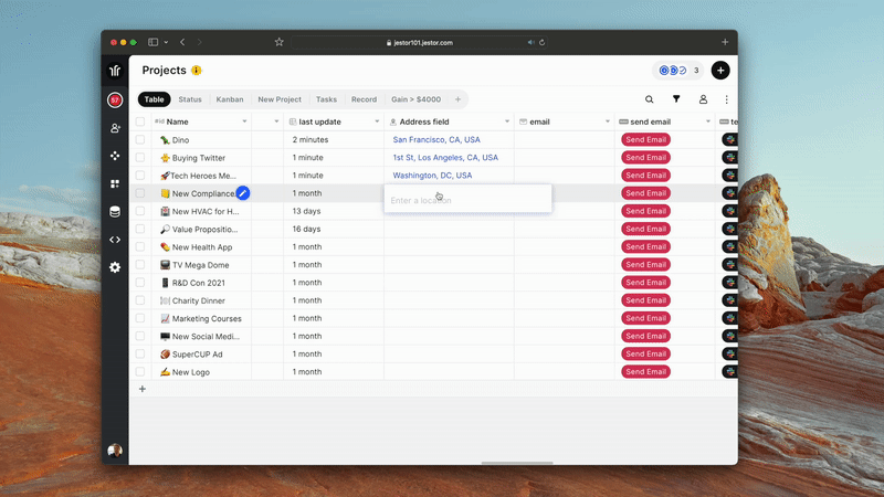 - Properties table — Keep property addresses standardized and linkable to Google Maps for easy access and visualization.