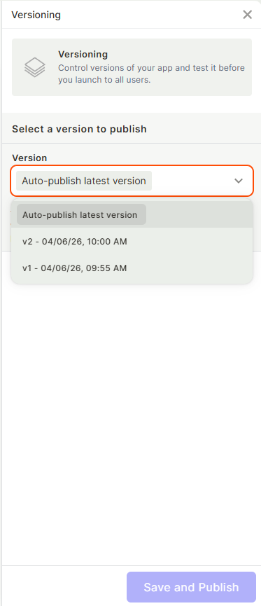 App Versioning allows you to edit your application without affecting what your users see. You can build, test, and refine new versions while keeping a stable published version running for everyone else.
