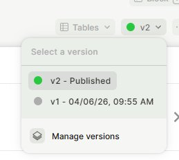 Editing without disrupting operations — Your app is being used in real time. Set a stable version (e.g., V4) as the published version, then make all your changes freely. Users continue seeing V4 while you work on newer versions.