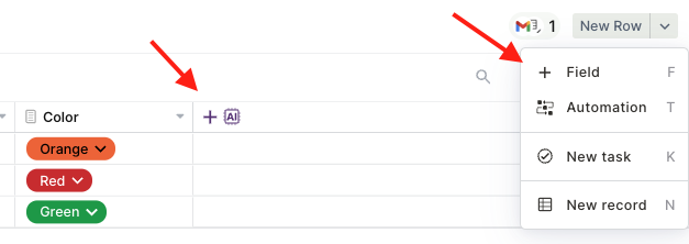 - On table mode, click on the last table header with a "+" or press (F).