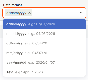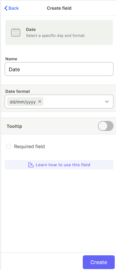 - The Date field does not include a time component — for records where the hour matters, use the Date and Time field instead.