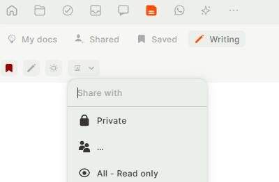 - Copy text — copies the full document content so you can paste it into an email or another tool.