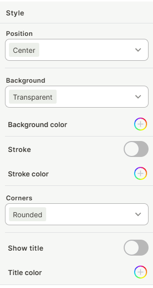 - Title color: Pick a color for the title text when Show title is enabled.