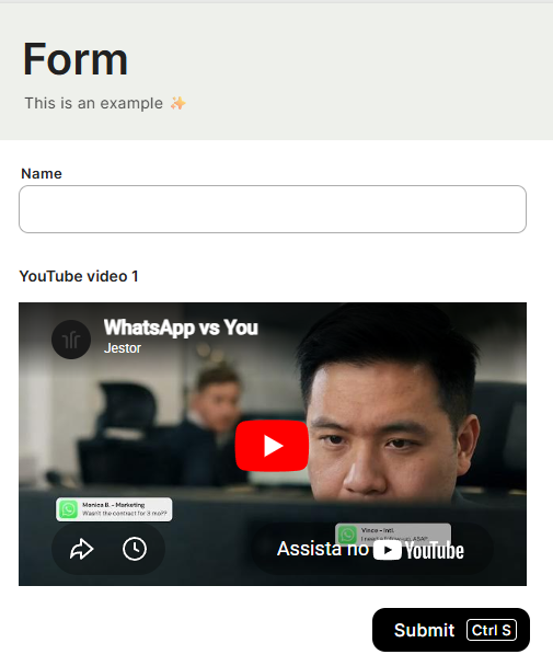 - Add form blocks between fields: Connected Table, Section, Spacer, New Page, Inline, Long Text, Image and GIFs, and YouTube Video