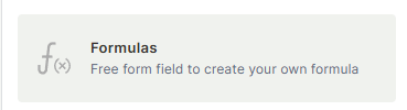 The Formula field lets you build calculated expressions using fixed values, fields from the same record, and fields from connected records. It supports basic arithmetic operators and a set of built-in functions, and allows you to choose the return type of the result.
