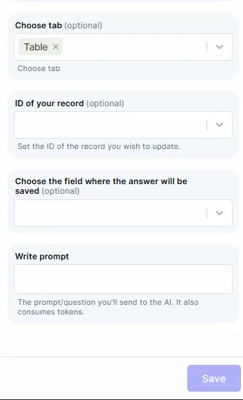 - This action does not have access to your table structure or field names unless you explicitly describe them in the prompt.
