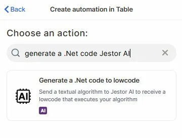Generate a .Net Code to Lowcode with Jestor AI (beta)