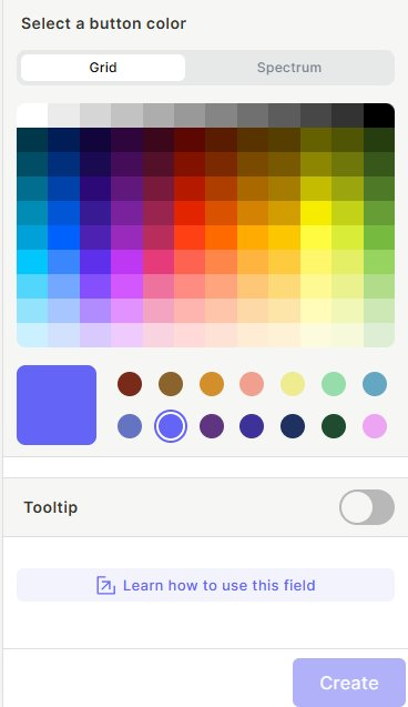 Step 6 (optional) — Enable tooltip Toggle Tooltip on to show a brief description when the user hovers over the button