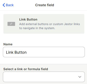 A field that displays a clickable button inside a table record. The button can open an external URL or a custom Jestor link, and can be fully styled with a label, icon, and color.
