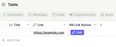 - Sales teams can add a Link Button pointing to a CRM record or proposal URL stored in each lead's row, letting reps open the right page in one click.