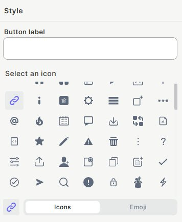 Step 4 (optional) — Select an icon Choose an icon or emoji to display on the button. Switch between the Icons and Emoji tabs to browse options.