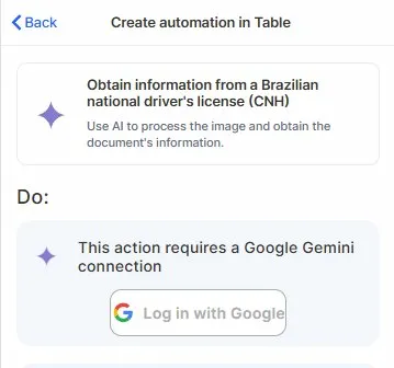Connect your Google account: This action requires a Google Gemini connection. Click Log in with Google and authorize access.
