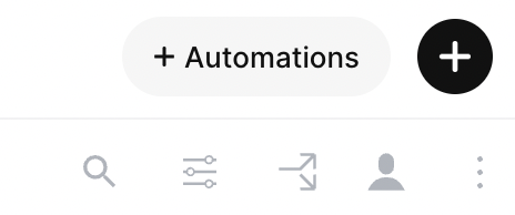You just have to click on the "+ Automations" icon on the upper right corner of the screen to open the No code automations panel, and then on the "+ Create new automation" button.