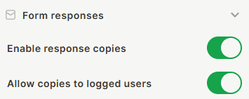 Allow copies to logged users — When enabled, response copies are only sent to users who are logged in to the workspace. Turn this off if the form is public and you want all respondents to receive a copy regardless of login status.