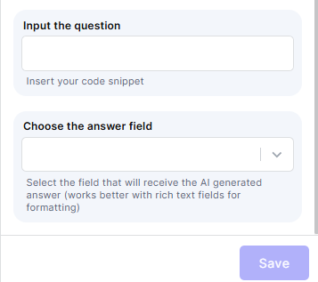 Choose the answer field: Select the field where the AI-generated review will be saved. Rich text fields work best for formatting.