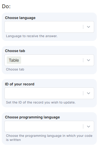 Choose language: Select the language in which the AI response will be returned. This controls the language of the output text, not the programming language of the code.