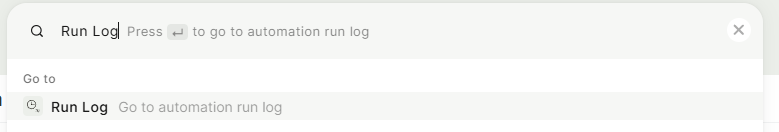 - The Run Log only shows asynchronous automation executions — synchronous automations are not listed here.