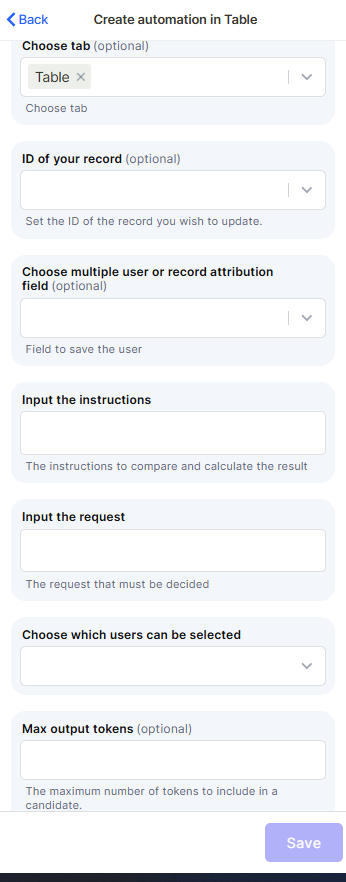 - An OpenAI connection is required. The action cannot be saved or executed without an authorized OpenAI account linked.