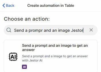 This page covers only the Send a Prompt and an Image to Get an Answer (Jestor AI) action. For instructions on how to access automations and create a new automation, see the Automations page.