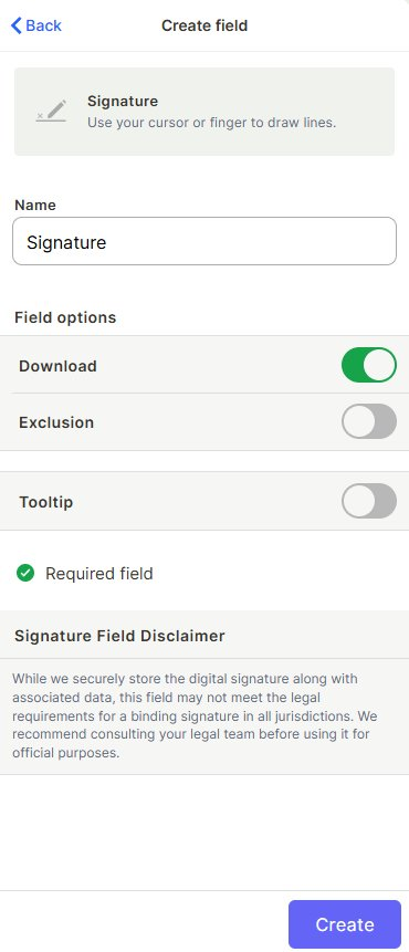 The Signature field lets users draw a signature directly in a record using their cursor or finger. The signature is saved as an image and can be downloaded.