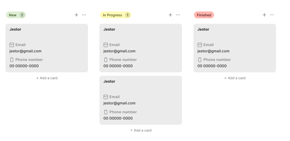 Smart Kanban works well for sales pipelines, where each stage represents a step in the funnel and cards are deals or leads. Teams can drag cards between stages as deals progress, and use conditional card colors to highlight urgent or high-value records at a glance.