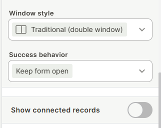 Show connected records — toggle whether connected records are visible when a record is opened.