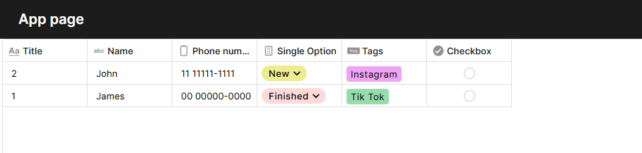 The Table block displays a filtered, customized view of any table directly on an app page. It lets you control which fields are visible, how records are sorted and filtered, and how users interact with records — all within the page layout.