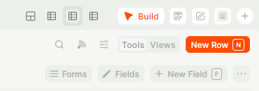 To add a new field, open your table and enter Build Mode by clicking the Build button or pressing B. Then click + New Field or press F and select the desired field type.