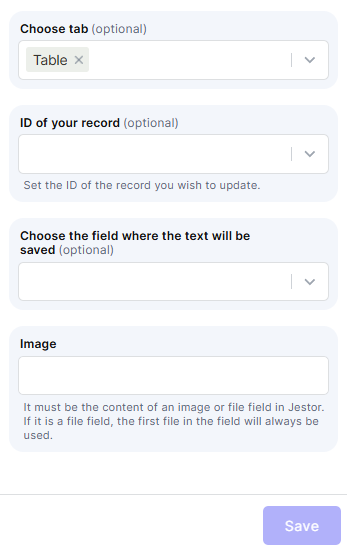 ID of your record: Set the ID of the record you want to update with the extracted text. You can pass this dynamically using a trigger value.