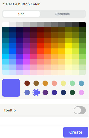 Select a button color — Pick a color for the button using the Grid (preset swatches) or Spectrum (full color picker) view.