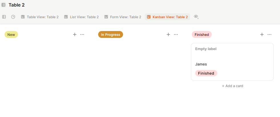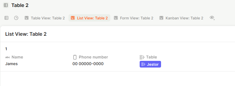 Views let you display the same table data in different formats, each suited to different workflows. You can create multiple views per table and switch between them at any time without affecting the underlying data.