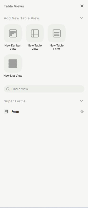 - The Super Forms section in the Views panel shows forms linked to the table, but these are managed separately from table views.