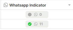The WhatsApp Indicator is a field that displays a visual summary of the WhatsApp conversation linked to a record. It shows the total number of messages exchanged and highlights who sent the last message — making it easy to see, at a glance, which conversations need attention.